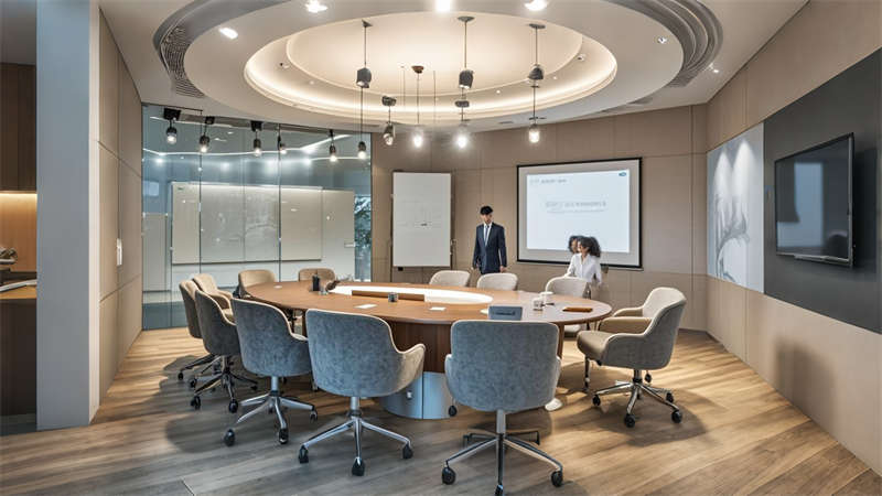 照明設(shè)計(jì)采用 3000K-4000K 色溫分區(qū)控制,重點(diǎn)區(qū)域設(shè)置磁吸軌道燈滿足展陳需求。聲學(xué)處理方面,關(guān)鍵會(huì)議室采用雙層中空玻璃與吸音毛氈墻面,確保 45 分貝以下靜音標(biāo)準(zhǔn)。全案貫徹 LEED 認(rèn)證標(biāo)準(zhǔn),90% 建材達(dá)到環(huán)保回收要求,實(shí)現(xiàn)美學(xué)價(jià)值與實(shí)用功能的有機(jī)統(tǒng)一。