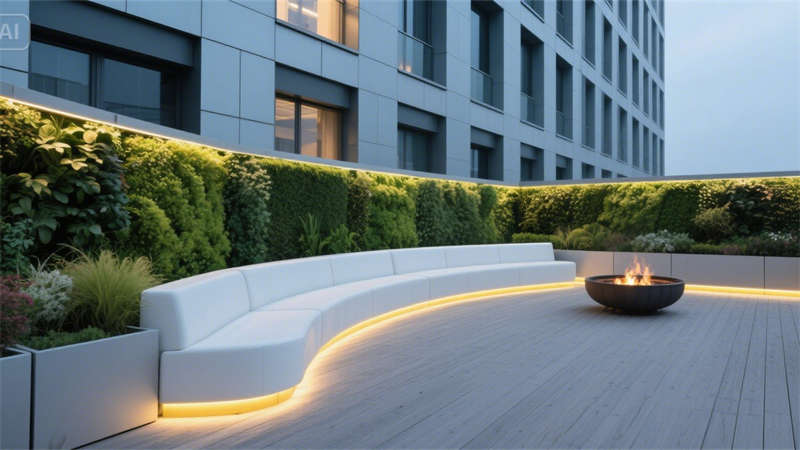 遠程會議室的環(huán)形攝像頭與聲學軟包、空中花園的模塊化花箱與夜景地燈、企業(yè)文化展廳的懸浮展柜與互動投影,在細節(jié)中植入智能科技與人文關懷。綠植隔斷、木紋材質(zhì)、企業(yè)色邊框等元素重復出現(xiàn),強化空間歸屬感。