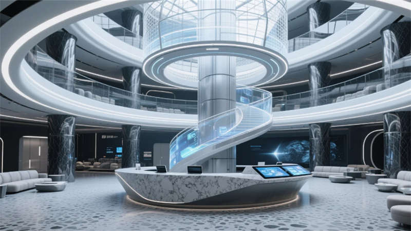 厘米級定位系統織就空間的數字神經網絡,實時感知行為軌跡的熱力圖譜。增強現實技術將虛擬協作層注入物理環境,會議紀要懸浮于白墻上空,項目進度可視化流淌在地面光帶中。智能環境控制系統如同無形的指揮家,根據溝通場景自動調節光域范圍與氣流速度,讓空間氛圍隨對話內容自然脈動。當數字邏輯與建筑肌理深度融合,辦公室便升維為承載集體智慧的生命體。