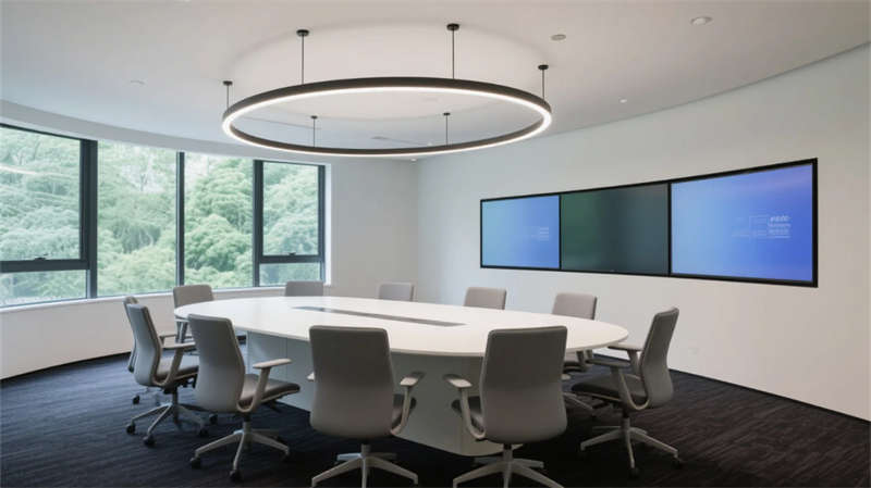功能區設計強調人性化交互:開放式工位通過綠植墻柔性分隔,兼顧協作與專注;獨立辦公室的落地窗將城市景觀框為動態藝術畫;圖書角與休閑區以弧形家具軟化空間邊界,激發靈感碰撞。材質選擇凸顯自然肌理——微水泥墻面、木格柵與石紋茶幾呼應合肥山水意蘊,而智能燈光系統則隨晝夜調節明暗節奏。多功能廳的可變布局適應從路演到沙龍的多元場景,詮釋了科技與人文的共生哲學。
