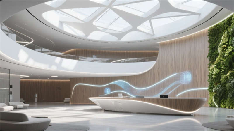 這座人工智能核心建筑以“人本科技”為基因,將自然生態(tài)脈絡(luò)植入未來科技肌理。流動空間打破傳統(tǒng)辦公界限,智能大堂的垂直森林與數(shù)據(jù)藝術(shù)共生,協(xié)作艙如發(fā)光的神經(jīng)節(jié)點散布于開放平面。實驗室成為科技與自然對話的劇場,玻璃幕墻外竹林隨風(fēng)搖曳,室內(nèi)數(shù)據(jù)流如星軌閃爍。