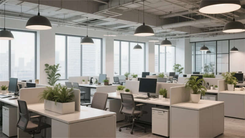 本辦公樓設計以簡約現代風格為核心,打造一個統一而流暢的空間體驗。整體強調功能性、舒適性和美學平衡,每個功能區均采用中性色調、干凈線條和自然元素,營造出寧靜和諧的環境。大堂入口以開放通透的布局迎接用戶,結合玻璃幕墻和木質細節,傳遞專業而溫馨的第一印象。開放式辦公區通過模塊化家具和充足采光,促進團隊協作與效率。會議室設計注重靈活性,透明隔斷和集成設備支持高效交流。員工休息區和餐廳咖啡吧作為社交中心,提供舒適休閑空間,增強員工福祉。經理辦公室平衡隱私與開放性,簡約家具營造專注氛圍。走廊和衛生間延續統一美學,注重清潔與引導性,確保空間銜接自然。