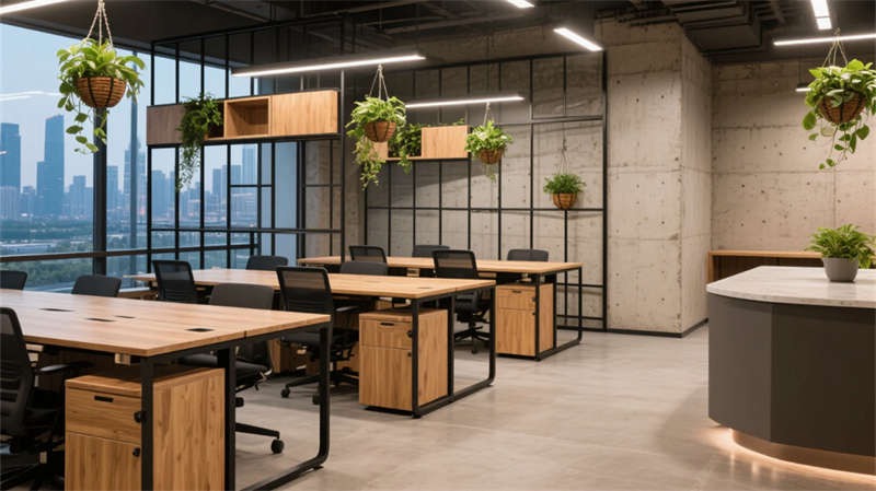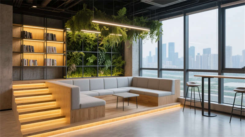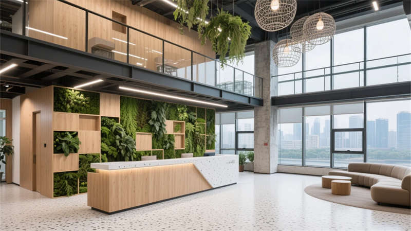 本項(xiàng)目以“自然滲透”與“靈活共生”為核心,將輕工業(yè)風(fēng)的理性框架與生態(tài)綠意巧妙融合。空間打破傳統(tǒng)辦公割裂感,通過(guò)綠植墻體、透光天井與流動(dòng)線(xiàn)條,在合肥城市肌理中營(yíng)造出呼吸感十足的職場(chǎng)綠洲。