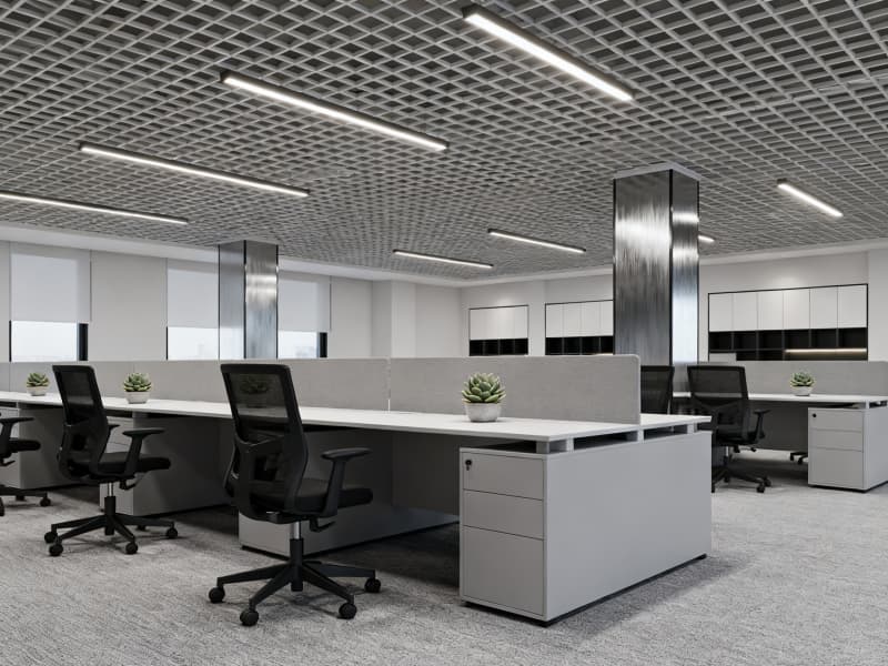 空間布局上,科學劃分接待區、開放辦公區、獨立辦公室、會議室、報告廳、休閑區、員工餐廳等功能區域,優化垂直與水平動線設計,保證辦公效率與使用便捷性。開放辦公區注重靈活性與協作性,采用模塊化家具與可調節隔斷,適配不同團隊的辦公需求;獨立辦公室與會議室強調私密性與專業性,通過材質與燈光營造沉穩氛圍;休閑區與員工餐廳則注重舒適性,為員工提供放松、交流的空間,平衡工作與休息。