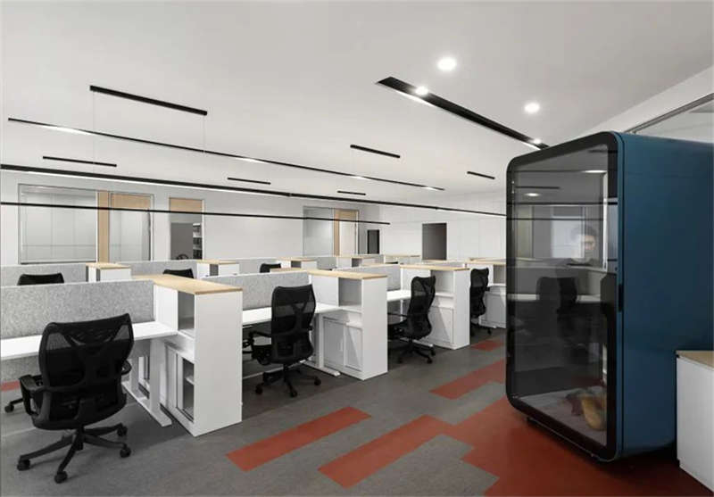 由于律師日常工作需要經(jīng)常打電話的原因,設(shè)計(jì)師設(shè)置了4臺不同的顏色靜音倉,讓員工得以在安靜的環(huán)境中進(jìn)行電話交談,同時(shí)不會(huì)干擾到其他同事辦公。