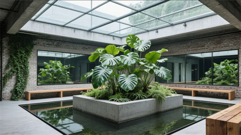設(shè)計(jì)將機(jī)械的冷靜與自然的呼吸編織為共生語(yǔ)言。裸露的鋼骨結(jié)構(gòu)承載生產(chǎn)使命,而攀附的綠植、原木肌理與暖光,則為空間注入生命脈搏。合肥堅(jiān)韌務(wù)實(shí)的精神被轉(zhuǎn)化為混凝土立柱與苔蘚墻的碰撞——冷硬材質(zhì)因生長(zhǎng)而柔軟。