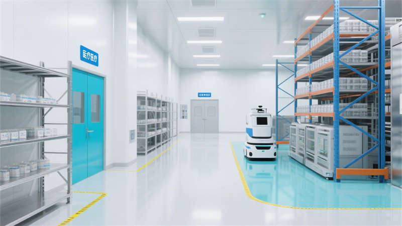 本設計以現代極簡工業風融合醫藥合規美學,打造出契合醫藥生產需求的專業空間。整體以潔凈白為基底,搭配醫療藍進行功能分區點綴,淺灰自然過渡,材質上選用不銹鋼潔凈面板、防菌環氧樹脂地面與高透防爆玻璃,營造出潔凈且專業的視覺氛圍。?