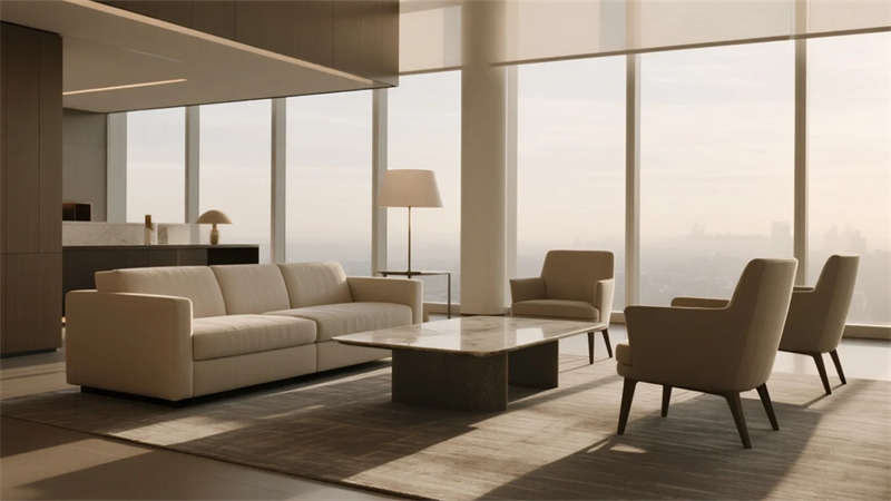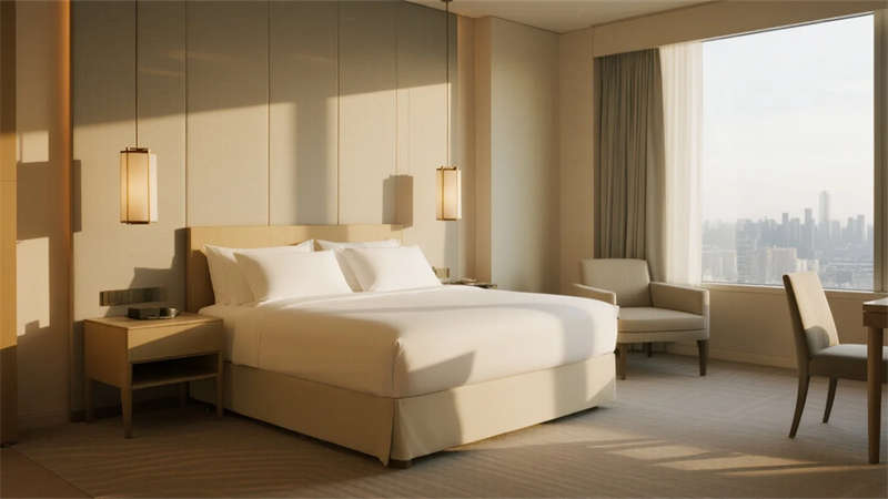 空間布局開闊通透,巨大的落地窗將自然光引入室內(nèi),與精心設(shè)計(jì)的隱藏式燈光系統(tǒng)共同營(yíng)造出溫暖而富有層次的光影氛圍。從大堂的恢弘大氣到客房的靜謐溫馨,每一處細(xì)節(jié)都旨在為旅客提供一種沉浸式的、回歸本真的休憩體驗(yàn)。整體設(shè)計(jì)強(qiáng)調(diào)人與空間的情感連接,在簡(jiǎn)約中蘊(yùn)含深度,于現(xiàn)代中流露溫潤(rùn),成就了一處城市中可呼吸、可感知的詩(shī)意棲居地。