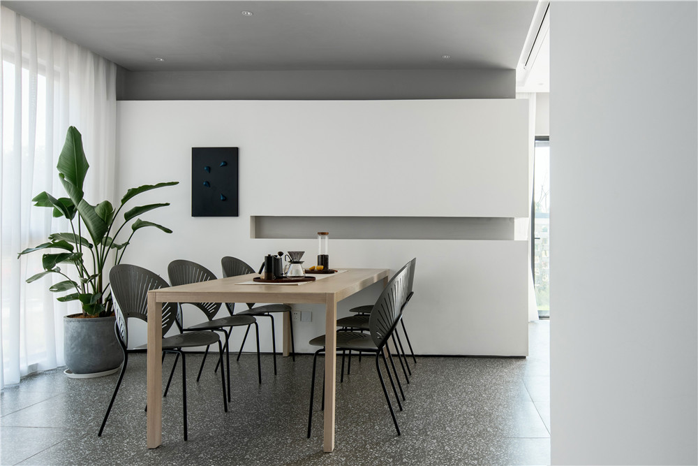 為避免上下樓梯的壓抑感,設計師還特意在樓梯處設置的鏡面反射,延伸空間,降低壓迫感。