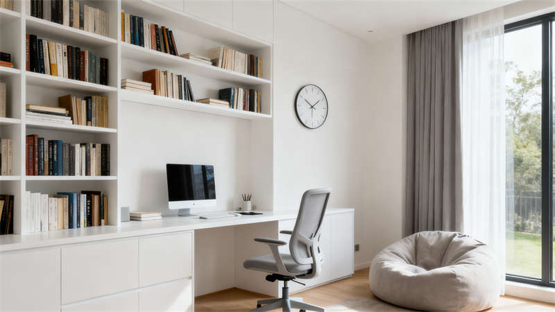室內(nèi)空間延續(xù)整體風格,客廳注重通透感,大面積采光讓空間更顯開闊,簡約款式的家具搭配棉麻質(zhì)感的軟裝,營造出溫馨放松的休憩氛圍;餐廳將實用性與美學結合,簡約餐桌椅搭配暖光吊燈,讓用餐時光更具儀式感;臥室以柔和色調(diào)為主,舒適床品與隱藏式收納設計,既保證了居住的舒適度,又維持了空間的整潔簡約;廚房采用簡潔的櫥柜設計,合理規(guī)劃動線,讓操作更便捷;衛(wèi)生間注重干濕分離,選用耐磨易清潔的材質(zhì),搭配簡約衛(wèi)浴潔具,保持空間清爽;書房/休閑區(qū)則以簡約書架與舒適座椅為主,營造出安靜專注的閱讀或工作環(huán)境,整體設計處處體現(xiàn)現(xiàn)代簡約的核心,為住客帶來愜意的居住體驗。