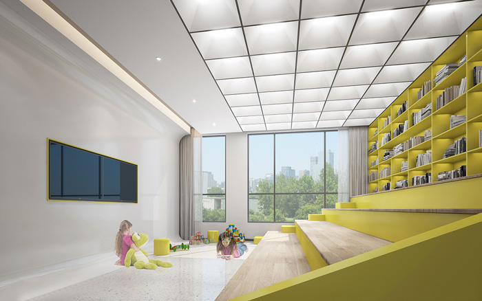 此處藝術(shù)學(xué)校設(shè)計(jì)中,告別了五彩斑斕的顏色,突出了空間的簡(jiǎn)潔與干凈,用黃色做為點(diǎn)綴色提升空間的趣味性。