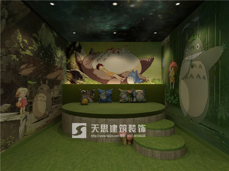 針對不同的客戶,房間里面設計了不同的主題包間,有日式主題、龍貓主題、浪漫主題等。