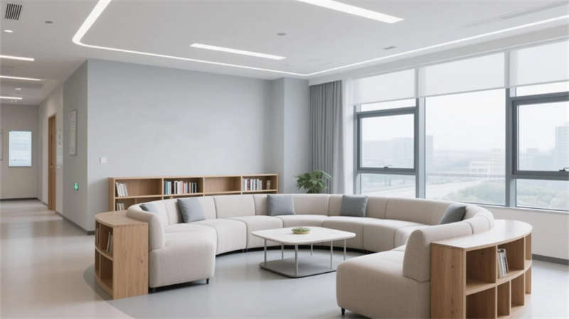 該社區(qū)醫(yī)院設(shè)計以現(xiàn)代簡約理念為核心,營造出溫馨而高效的醫(yī)療環(huán)境。整體空間強(qiáng)調(diào)人性化布局,接待大廳寬敞明亮,弧形接待臺與自然光結(jié)合,營造親切的第一印象。候診區(qū)舒適寧靜,沙發(fā)與書架的點綴減輕等待焦慮,診室則注重隱私與專業(yè)感,柔和色調(diào)提升患者信任。藥房設(shè)計簡潔清晰,便于快速取藥,急診室布局高效,確保緊急響應(yīng)流暢?;炇液陀跋窨仆怀龉δ苄?,無菌環(huán)境與設(shè)備集成保障精準(zhǔn)診療,康復(fù)區(qū)開放通透,綠植與自然光促進(jìn)身心恢復(fù)。所有區(qū)域統(tǒng)一運(yùn)用中性色調(diào)、木質(zhì)元素和流線型家具,強(qiáng)化視覺連貫性,同時融入充足采光與綠意,打造舒緩氛圍。設(shè)計不僅提升醫(yī)療體驗,還呼應(yīng)了合肥的城市人文特色,為居民提供一處安心、便捷的健康港灣。
