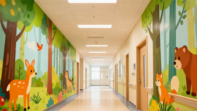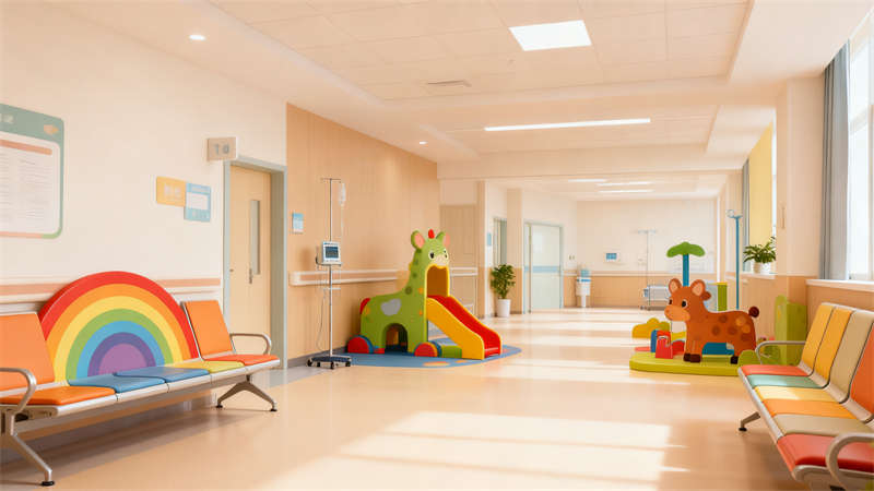 住院區域的裝修兼顧溫馨感與功能性,病房內布置溫馨的床品與收納空間,同時預留足夠的活動區域,方便孩子在室內活動。走廊兩側墻面設置趣味互動裝置與科普小知識展示區,讓孩子在行走過程中能獲得樂趣與知識。游樂區裝修則以安全為首要原則,地面采用防滑材質,游樂設施經過特殊處理,確保孩子在玩耍時的安全,同時通過豐富的色彩與造型,為孩子打造專屬的歡樂空間。整體裝修設計將醫療功能與兒童友好理念深度融合,為合肥這座城市的孩子們打造出一個充滿關愛與溫暖的就醫環境。?