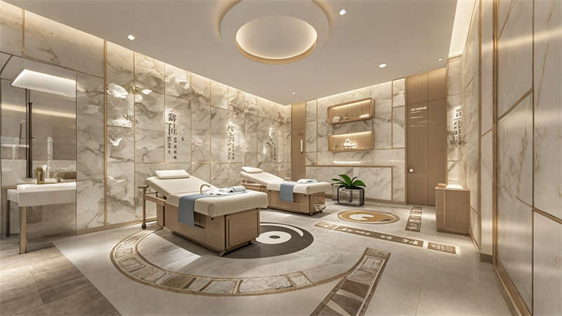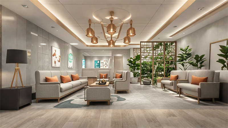 本2000平中醫院設計融合傳統中醫文化與現代醫療功能,采用 ' 療愈之境 ' 核心理念??臻g規劃采用 ' 回' 字形動線,門診、診療、康復三大功能模塊環繞中央庭院布局。色彩體系以米白、淺灰為基底,點綴赭石、黛青等傳統中藥色彩,墻面肌理漆模擬紙張質感呼應古籍文獻。診療區域采用模塊化隔斷系統,兼顧隱私與通風需求。智能照明系統可模擬晝夜節律變化,候診區座椅集成無線充電功能。重點區域設置 AR 中醫文化互動裝置,住院部走廊每 10 米設置中藥香薰擴散點。材料選擇注重環保性與耐久性,地面采用防菌 PVC 卷材,墻面使用易清潔的納米涂層。整體設計通過現代設計語言詮釋中醫 ' 天人合一 ' 理念,打造兼具專業醫療功能與人文關懷的現代化中醫院空間。
